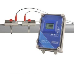 For best performance Doppler sensors should be mounted away from turbulence creating devices like pipe elbows and tees, and away from velocity increasing devices like controlling valves and pumps. Typical accuracy is ±2% of full scale. Doppler instruments include a clamp-on ultrasonic sensor, connecting cable and an electronics enclosure which can be mounted at a convenient location nearby (within 500 ft / 152 m).